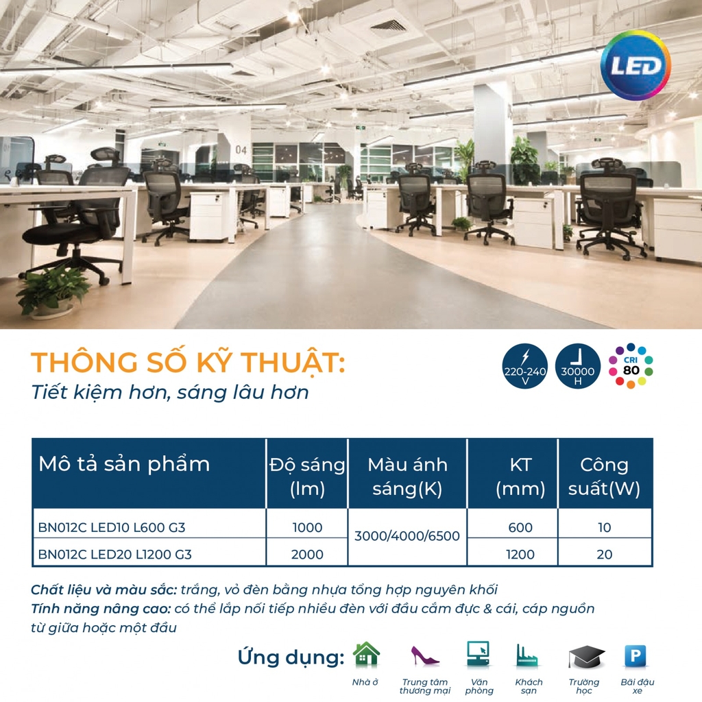 Xem thêm sản phẩm BN012C LED20 L1200 tương tự có kích thước 1.2m công suất 20W